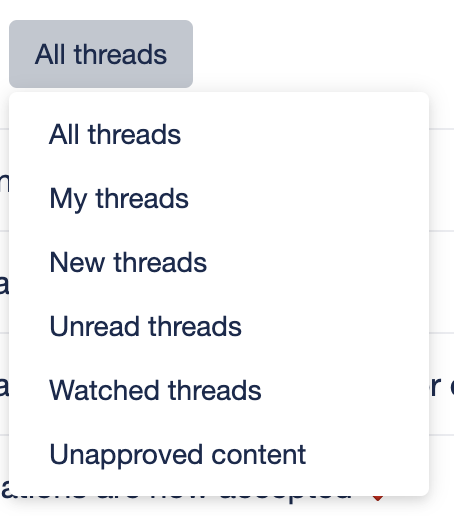 You can filter this list to only see some of those threads. In next Misago feature release plugins will be able to include custom filters.