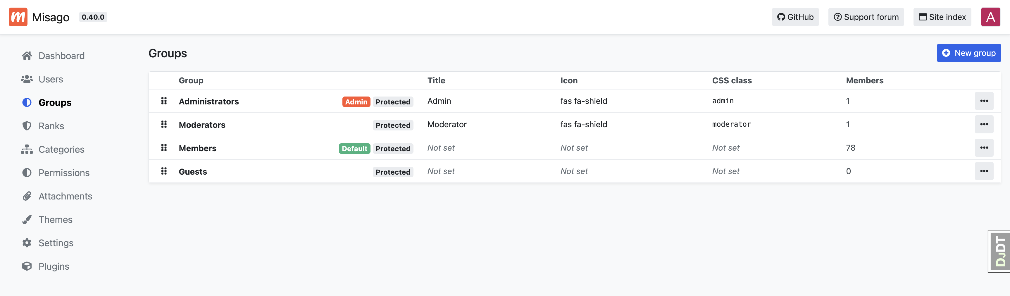 This system is (to my knowledge) unique to Misago, and it's also confusing to reason about. Other forums have concept of users group, which in Misago is muddied by Rank ("primary group") and Role ("secondary group but not really").